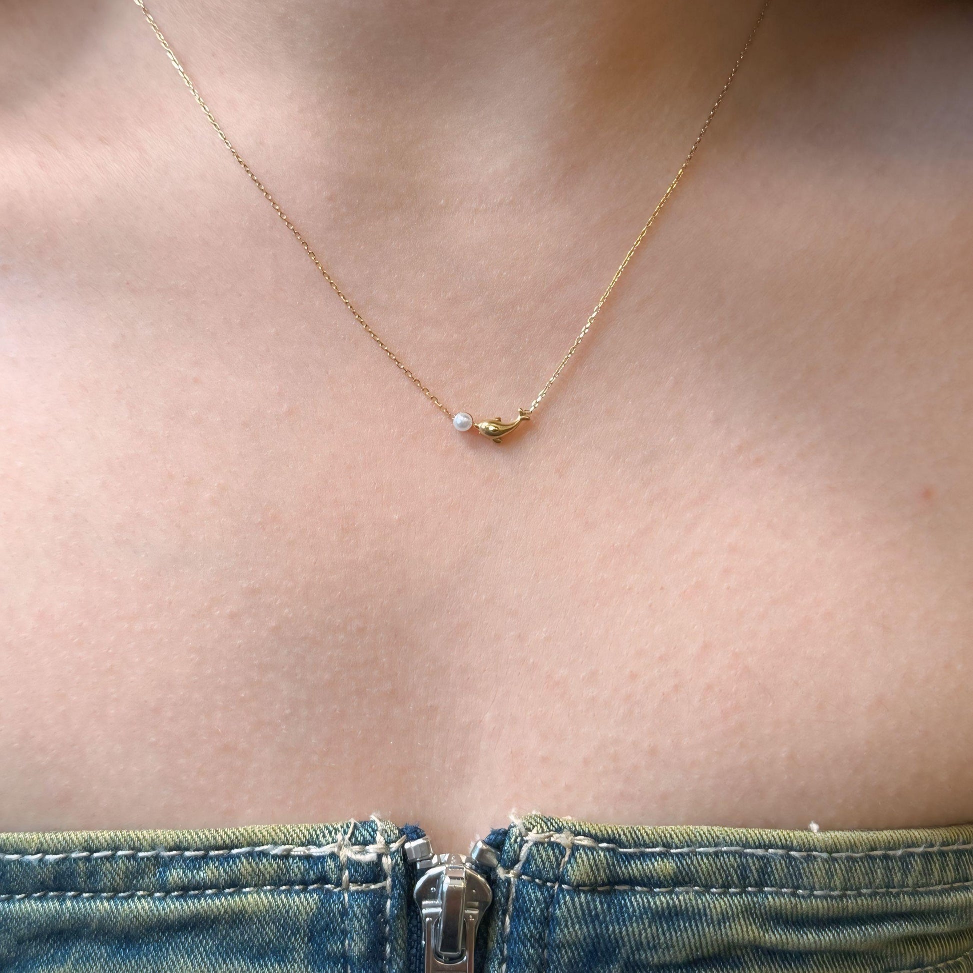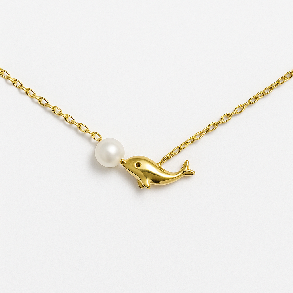 The Delfyne Necklace brings a golden dolphin and pearl duo to your neckline for a touch of whimsy. This 18K gold-plated piece is waterproof, tarnish-resistant, and full of charm — just like you.