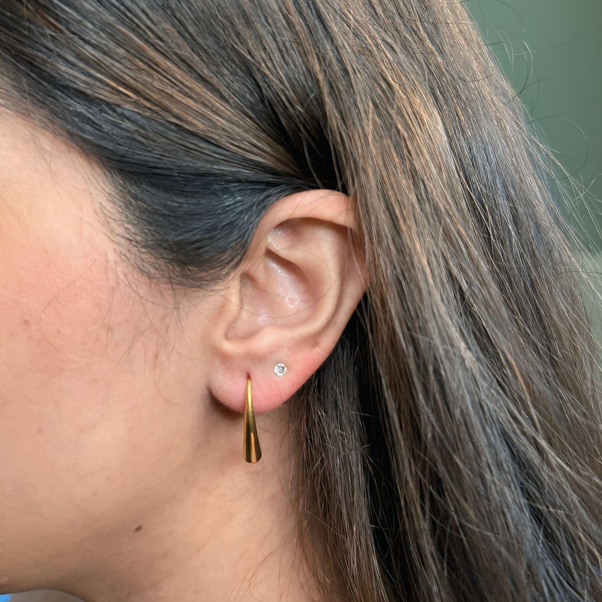 The Raindrop Earrings feature a fluid, sculptural silhouette that hugs the ear with minimalist flair. Lightweight and crafted in 18K gold plating, they’re waterproof, anti-tarnish, and skin-friendly — perfect for everyday sophistication with zero fuss.