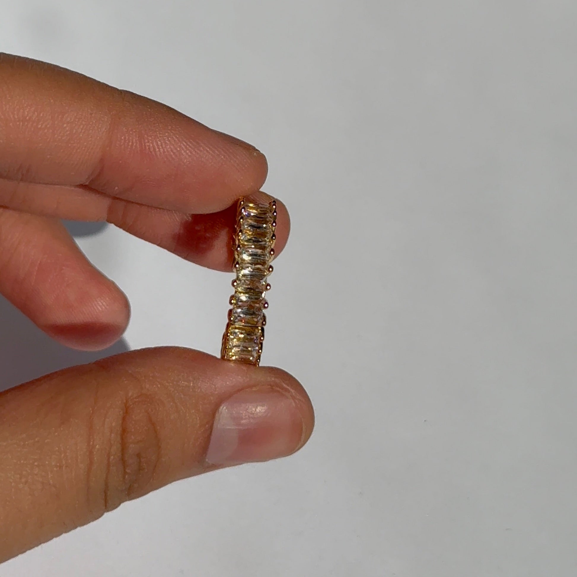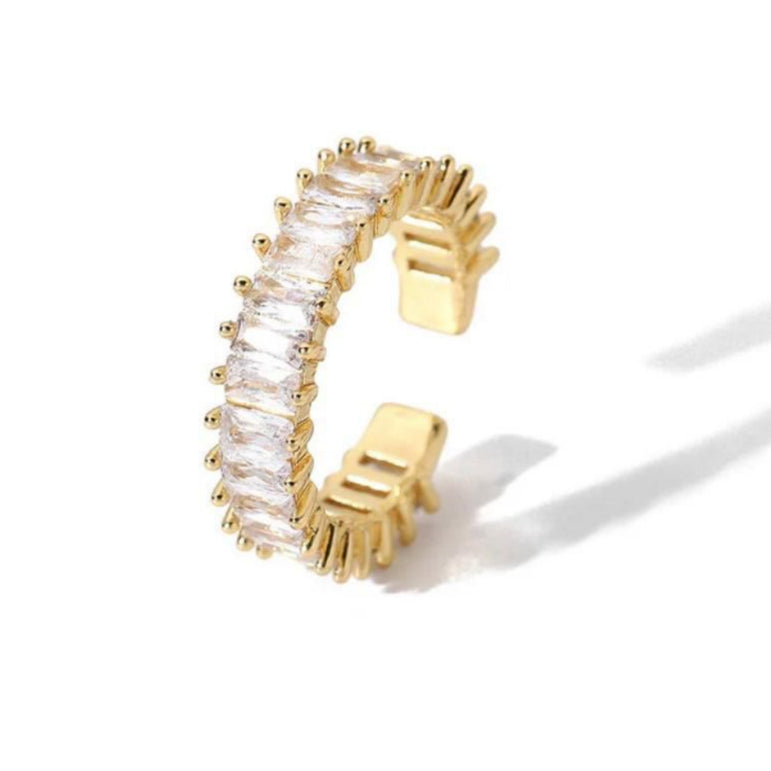 The Elara Baguette Ring is the arm candy you’ll never want to take off. With its sleek gold finish and a row of sparkling baguette-cut crystals, this ring is a minimalist’s dream with maximal impact. It features a smooth adjustable band for ease and security. Tarnish-free, waterproof, and crafted to endure everyday wear.