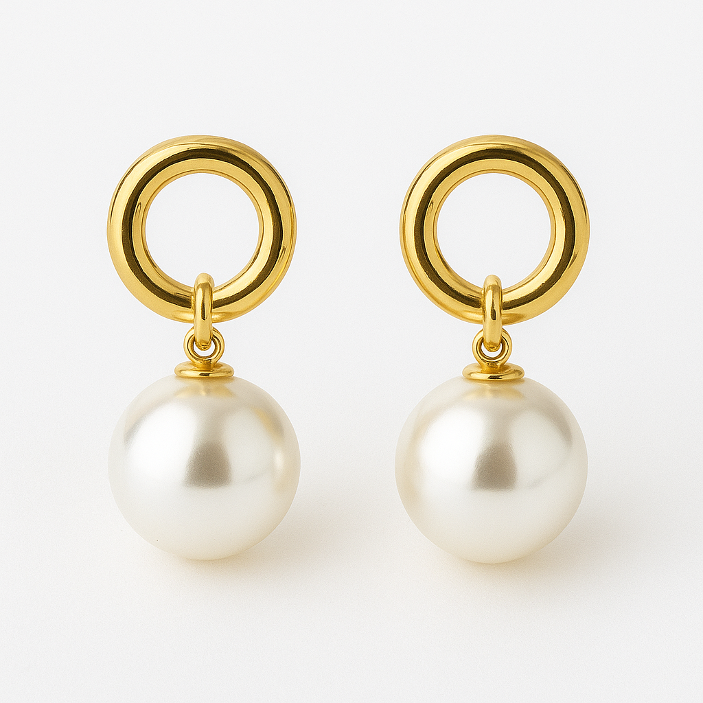 The Eve Hoops combine a minimal gold-plated ring with a single faux pearl drop — timeless, elegant, and low-key luxe. They’re hypoallergenic, tarnish-resistant, and waterproof for effortless everyday wear.