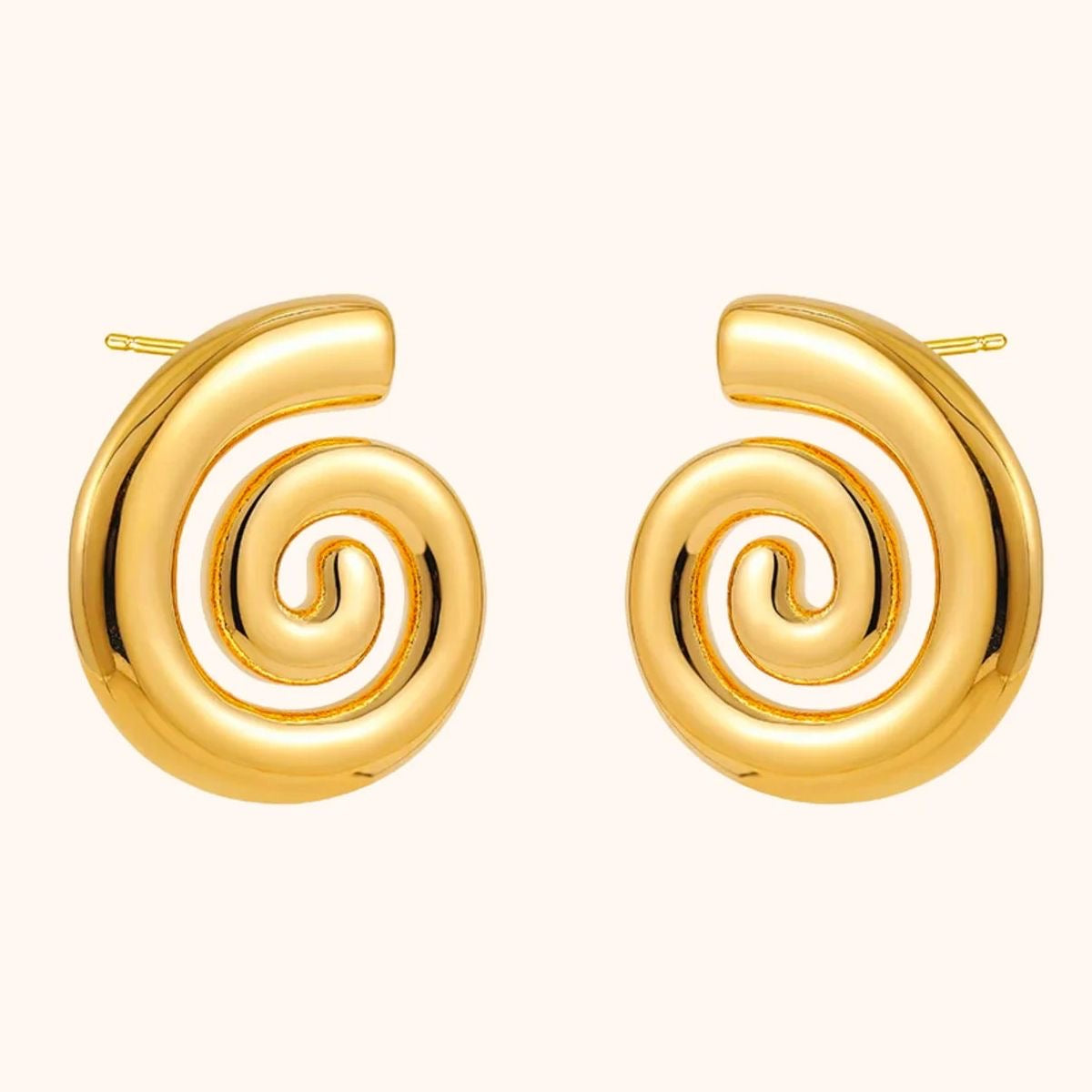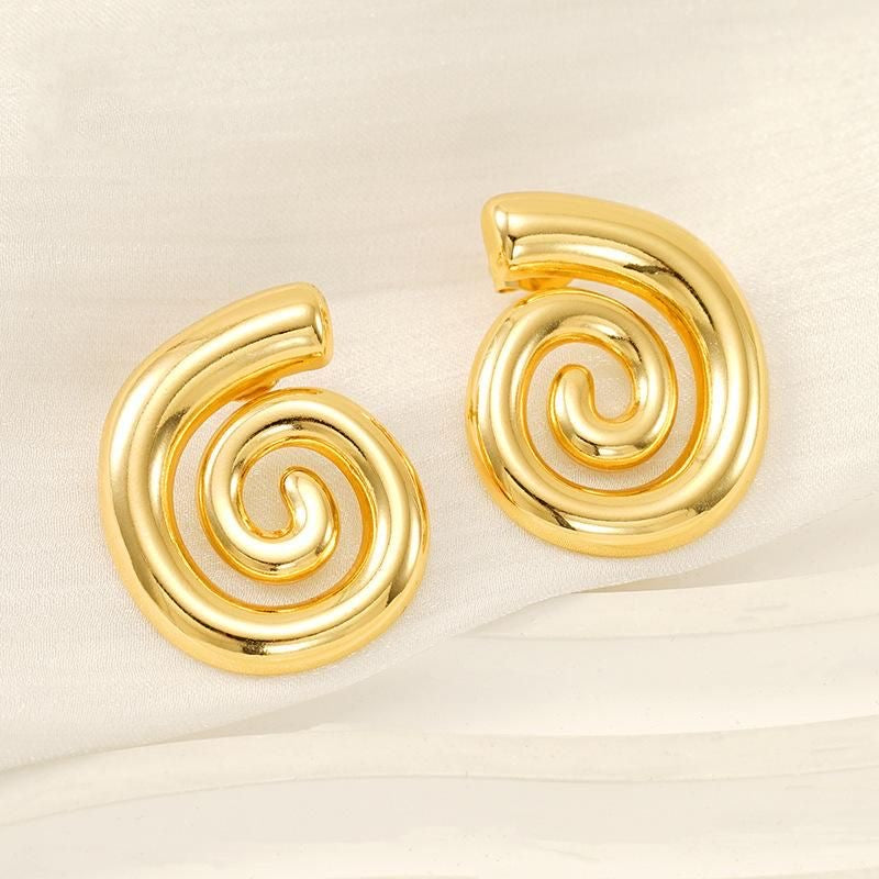 Step into the spotlight with our Golden Swirl Studs – bold, glossy, and full of retro flair. These 18K gold-plated earrings are a sculptural swirl of style, made to be anti-tarnish, waterproof, and feather-light for all-day comfort. Hypoallergenic and crafted for the bold at heart, they’re an instant statement-maker with a nostalgic edge.
