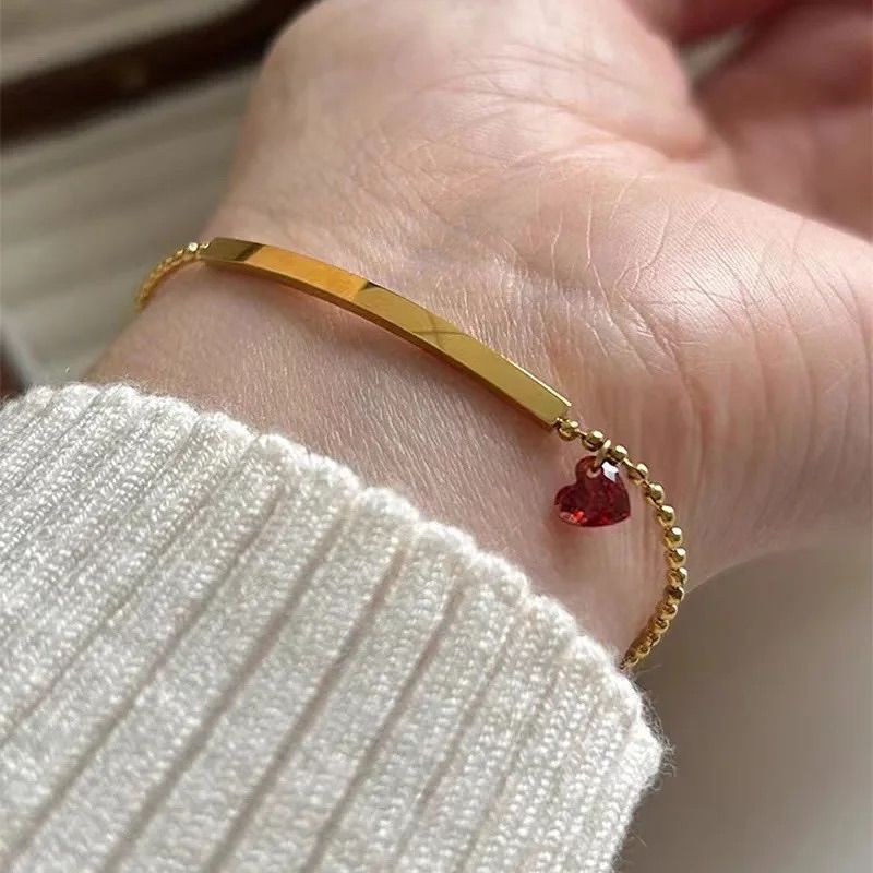 The Heartline Charm Bracelet features a single red enamel heart on a fine gold chain — delicate, sweet, and designed to last. Made with 18K gold plating, it’s waterproof, anti-tarnish, lightweight, durable, and hypoallergenic.