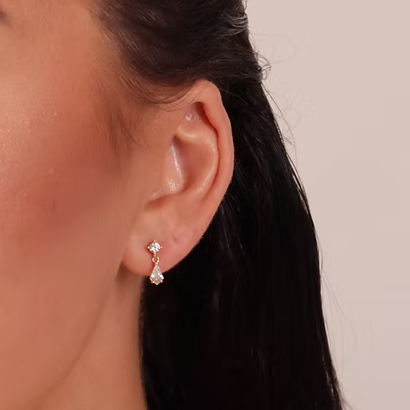 Lunara Drops feature a single, faceted crystal that catches light from every angle. Minimal yet radiant, they transition effortlessly from day to night. Anti-tarnish, waterproof, and feather-light for everyday comfort.