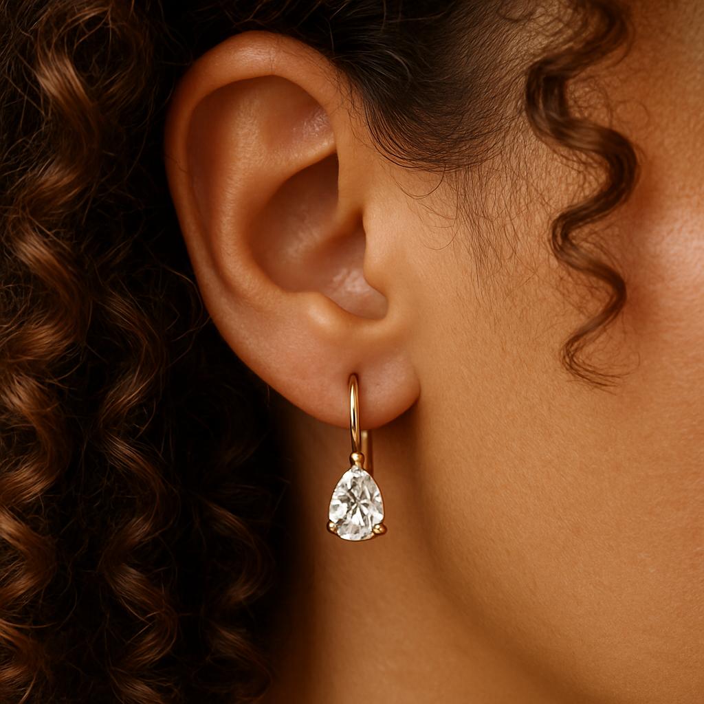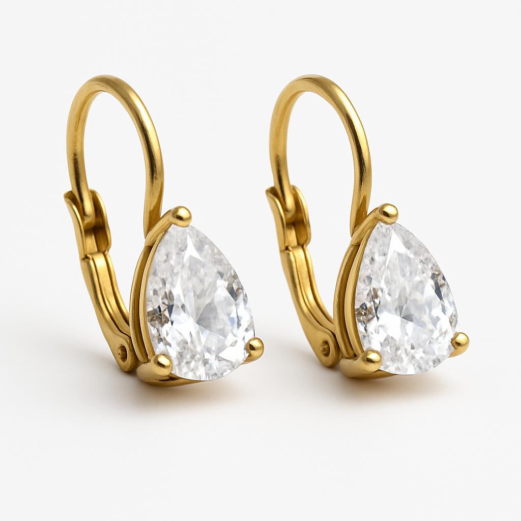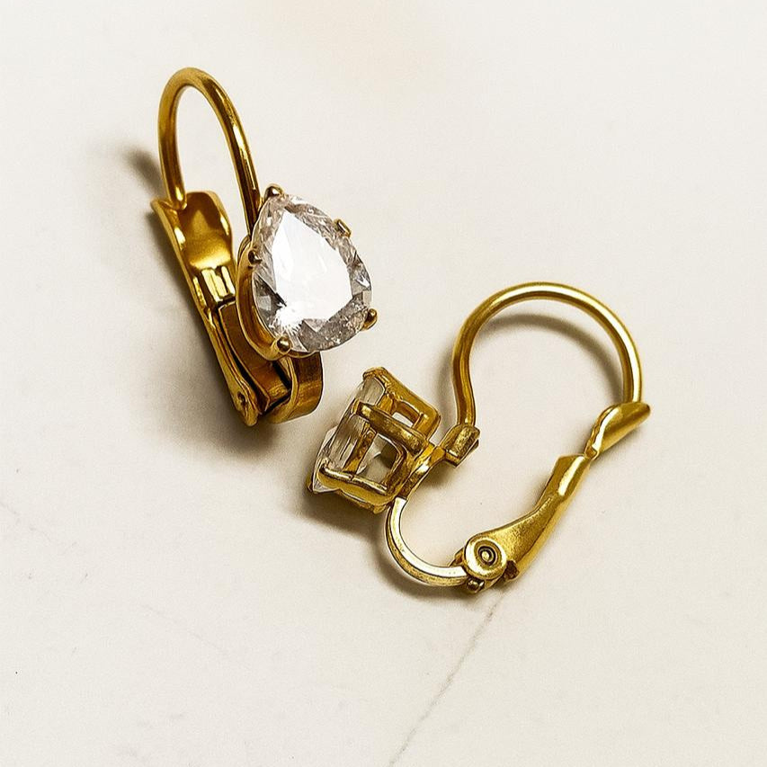 The Solaé Earrings are a timeless pair featuring a pear-cut stone set in a polished gold drop. Designed for effortless elegance, they balance modern charm with classic sparkle. Hypoallergenic, anti-tarnish, and ultra-lightweight.